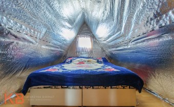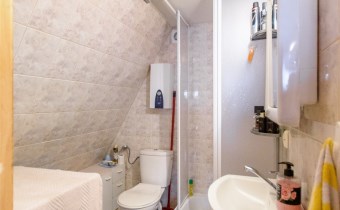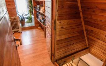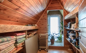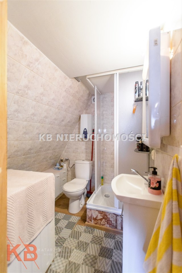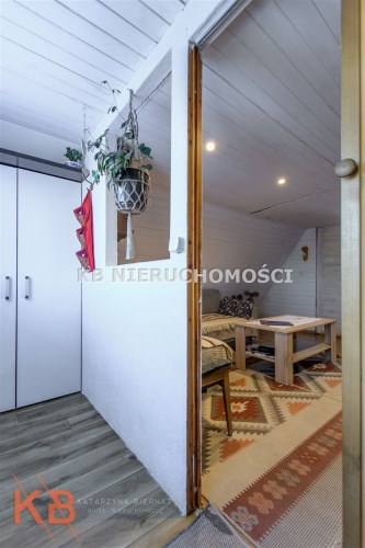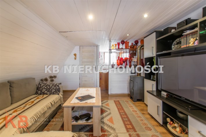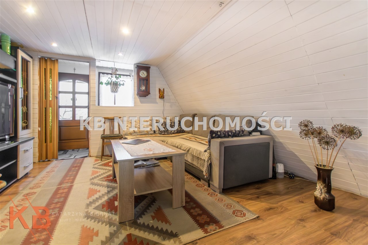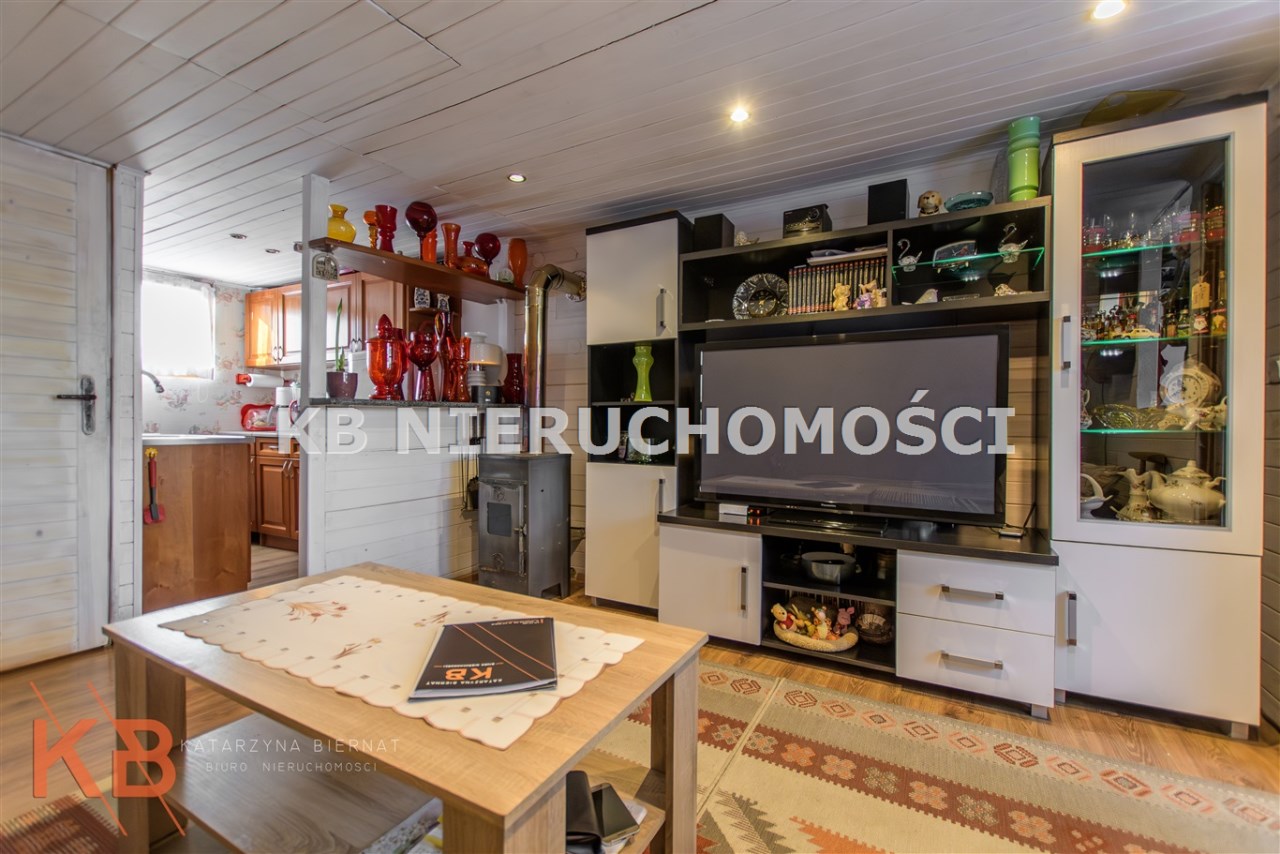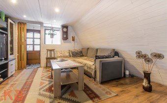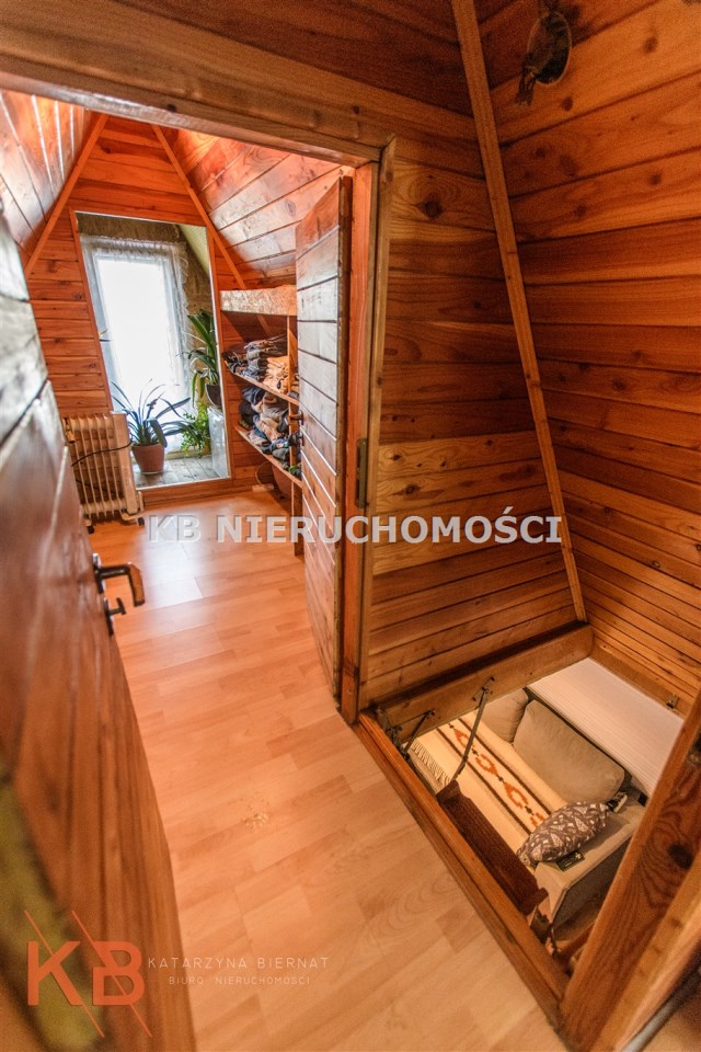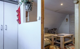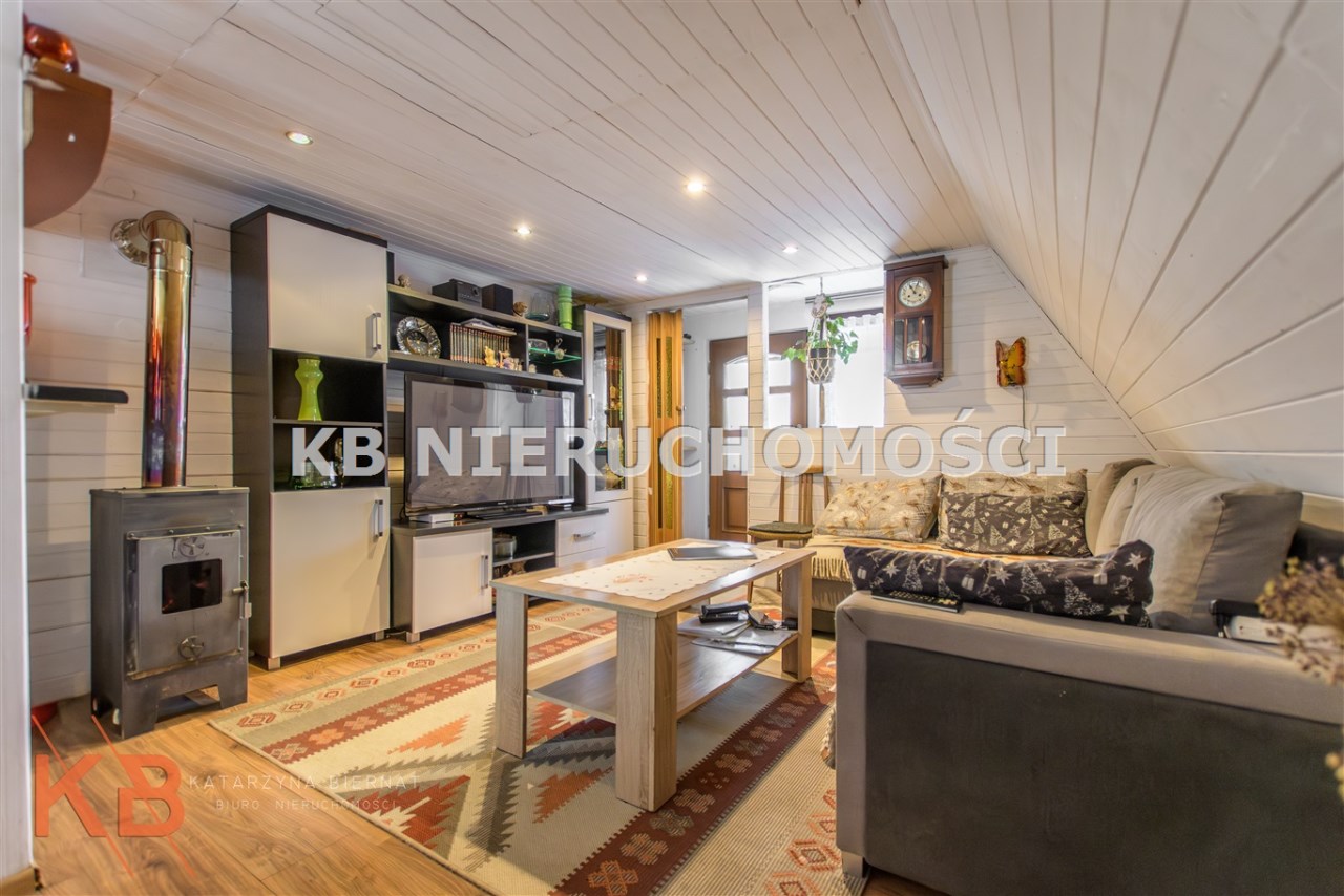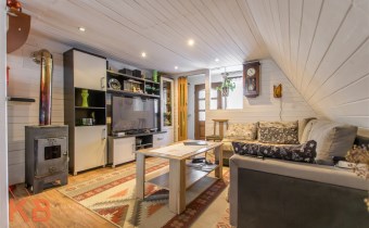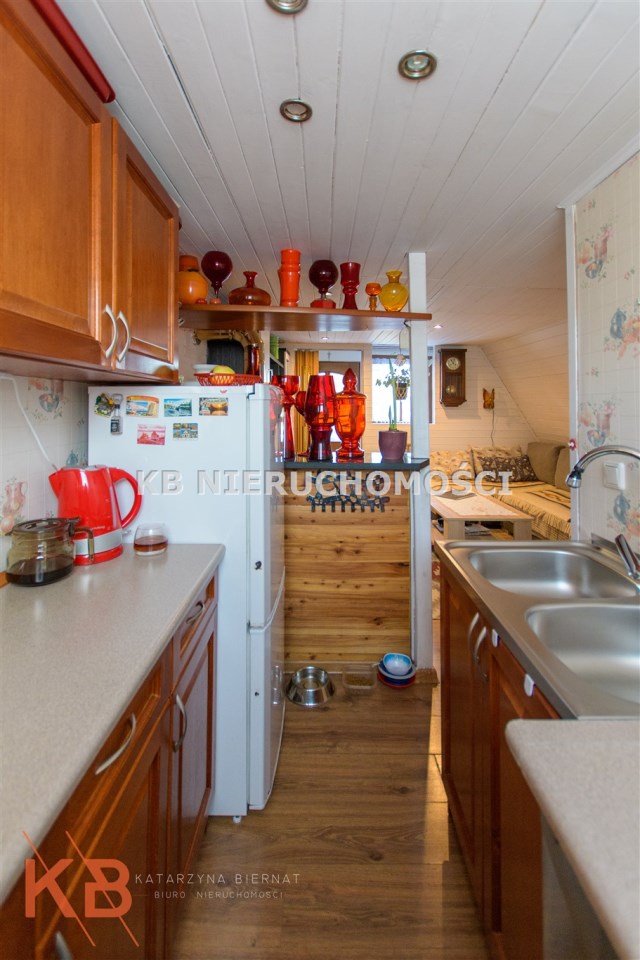 Dom około 40m2, całoroczny, składa się z pokoju z kuchnią oraz pokoju na górze.