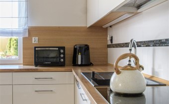 - nowocześnie urządzona kuchnia wraz z zabudową kuchenną i sprzętami AGD oraz spiżarnia