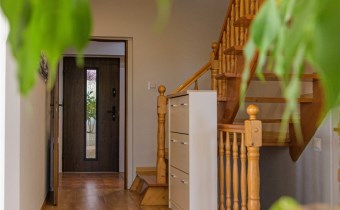 Dom ma trzy poziomy użytkowe (piwnica, parter oraz piętro), starannie zaprojektowane, by oddzielić część dzienną od prywatnej, zapewniając domownikom wygodę i przestrzeń do odpoczynku.