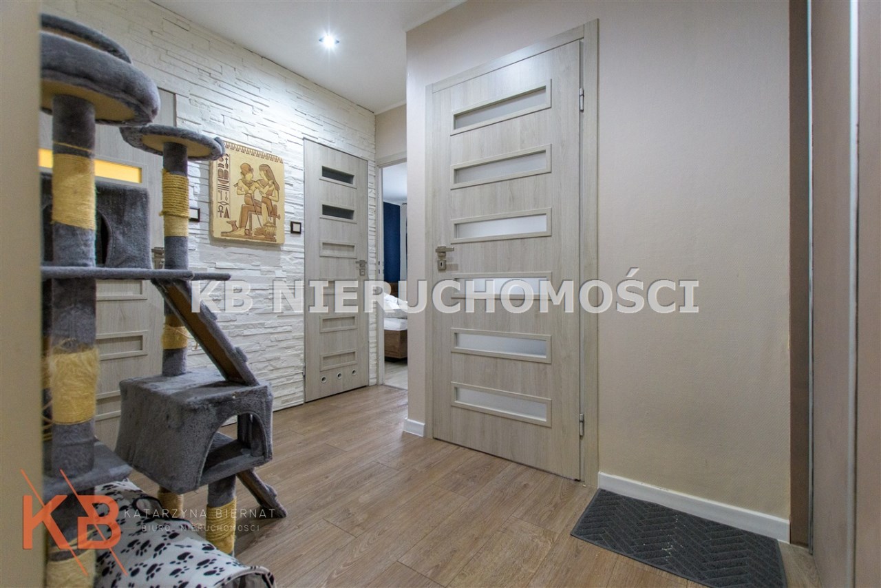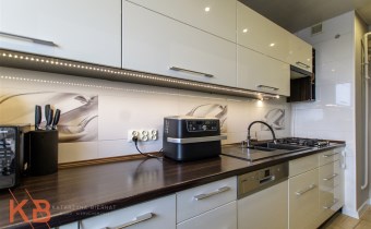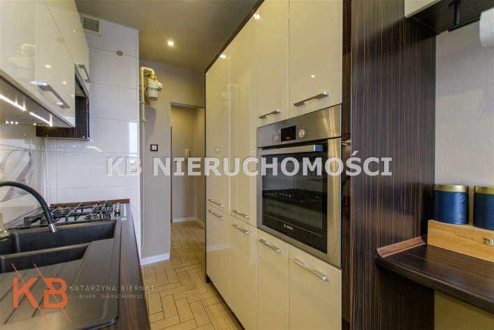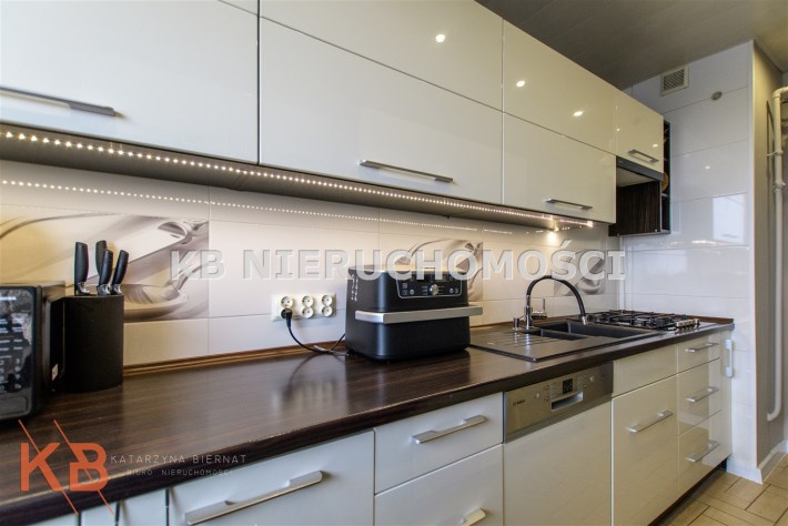 Istotnym atutem nieruchomości jest nowoczesna zabudowa kuchenna, która wraz ze sprzętem AGD pozostaje w cenie mieszkania. Łazienka po remoncie, wykończona w glazurze, podobnie jak oddzielne WC. Dodatkowo w przedpokoju pozostaje szafa w zabudowie.
