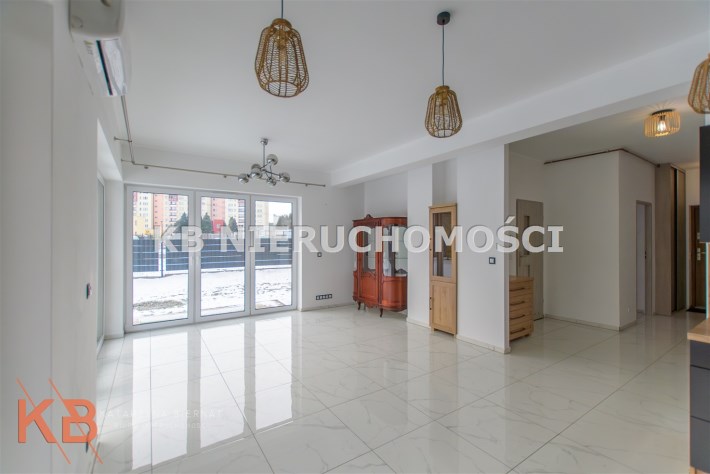 Znajduje się na nowowybudowanym osiedlu wielorodzinnym na parterze.